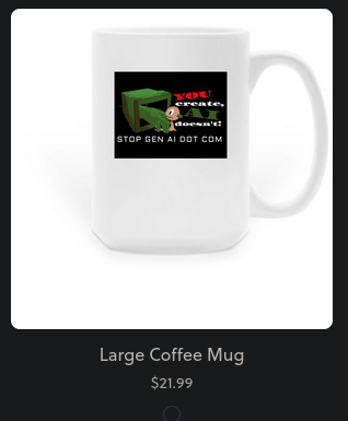 Images on this page are screenshots! You must go to this page to actually look at merch properly and buy stuff: https://www.bonfire.com/store/stopgenai/